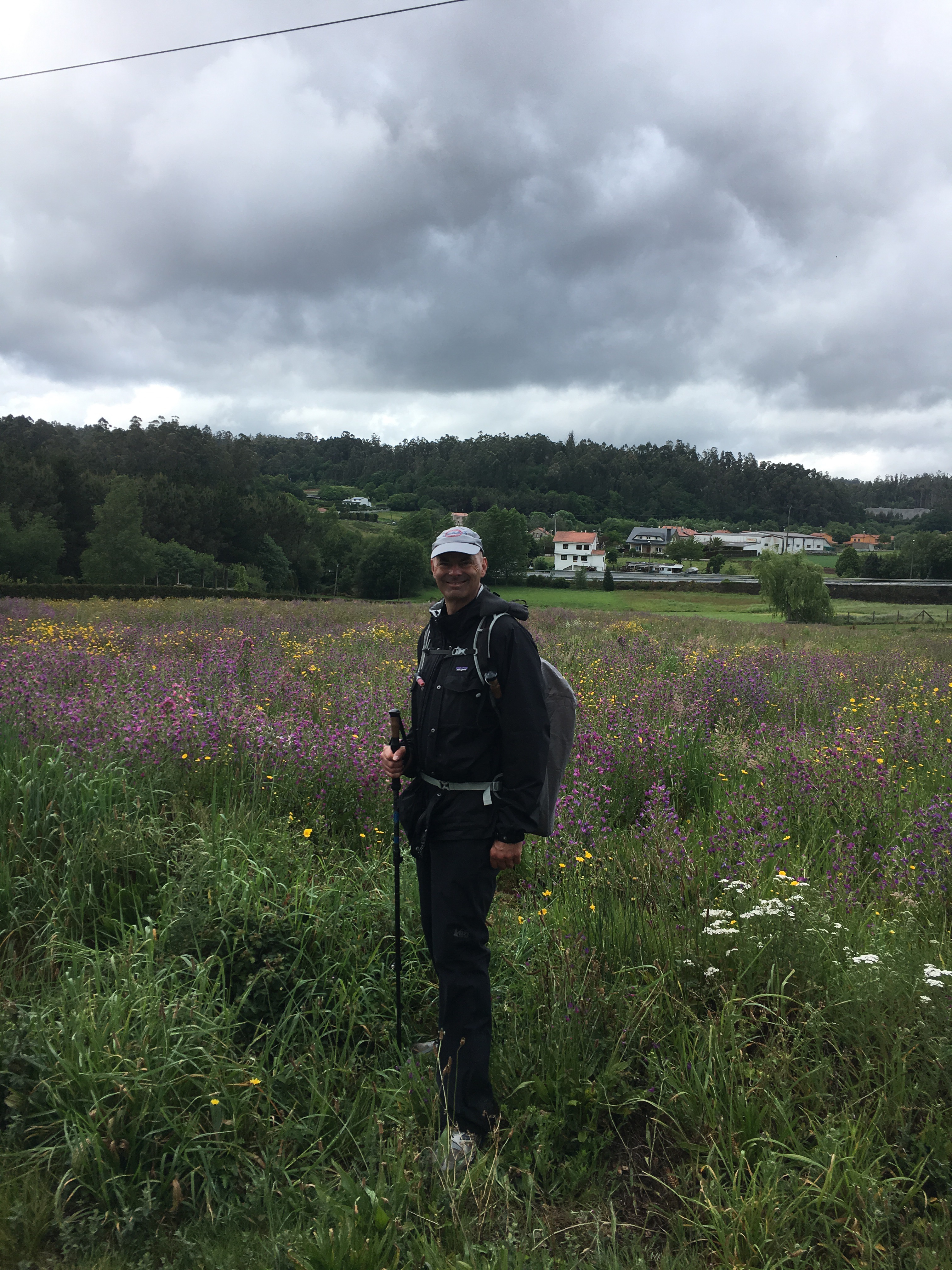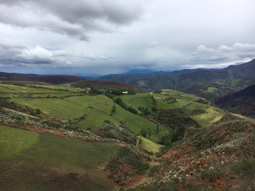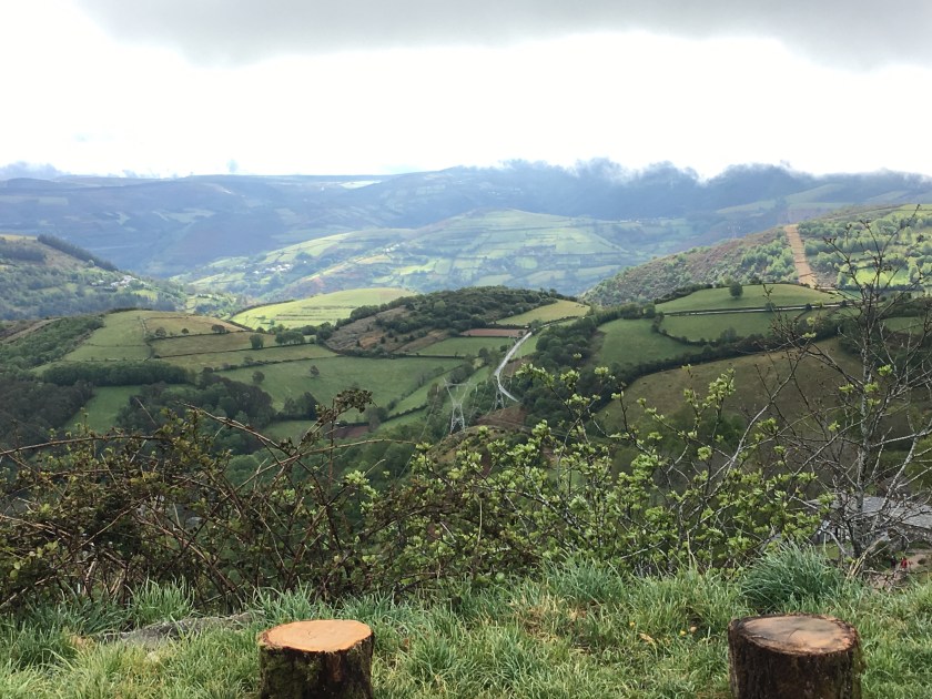 May 7, 2017 – 12 miles (19 Km) A bit shorter walk today, which was nice, as our legs are feeling the last few days. It was sunny all day, also a nice change. Tomorrow is probably our last dry day, then there’s rain in the forecast for the rest of our trip. Let’s hope it’s not too much!! We had a few hills and walked mostly on trails, and the scenery was pretty nice, mostly green mountains around us.