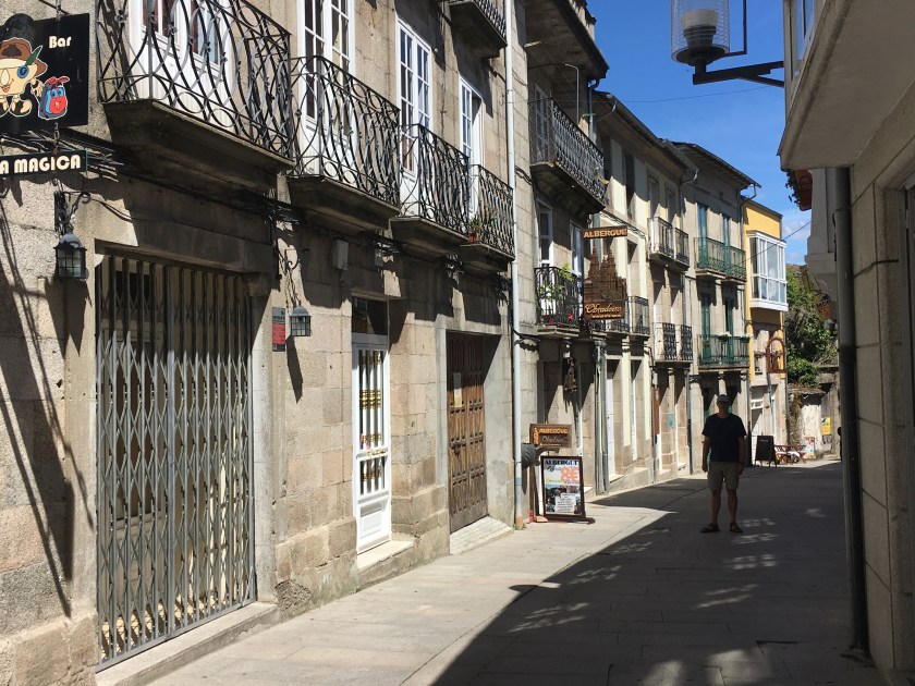 We’ve made it to Sarria, just over the 100 Km mark to Santiago. That is the distance you need to walk in order to get a Compostela, the certificate of completion. You also need your pilgrim passport with at least 2 stamps per day to prove you have done it.  A lot of people don’t have time to walk the whole thing, so they start here. Just walking into town, we were amazed at the number of albergues (hostels) around. The Main Street has tons of them! We expect the trails will be much fuller tomorrow.